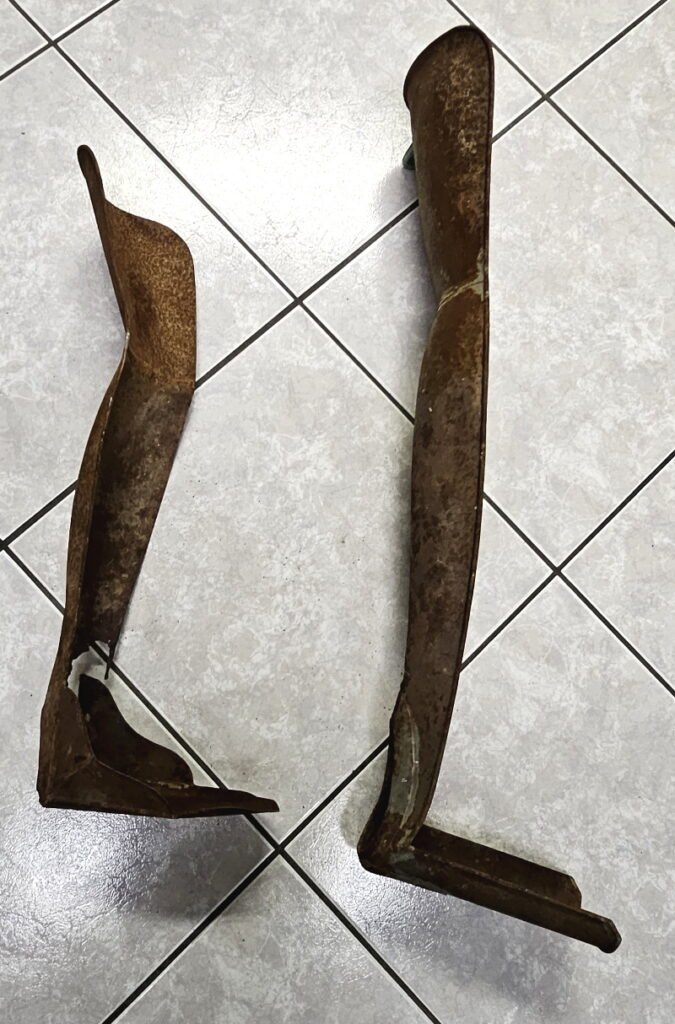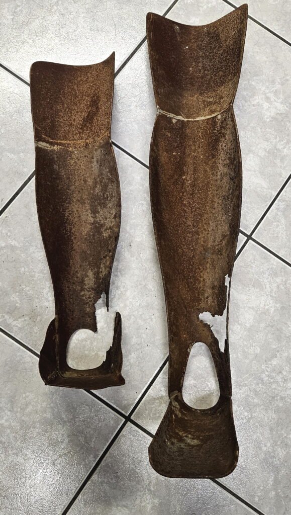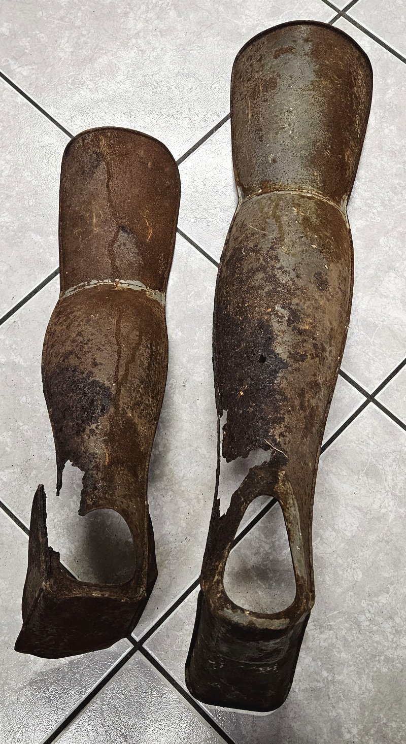 extrem selten zu finden; seinerzeit zwar Massenware aber die Zeit hat hier viel modernere Stücke heraus gebracht und so wurden diese einfachen Beinschienen im Alteisen entsorgt – heutzutage extrem selten aufzufinden;