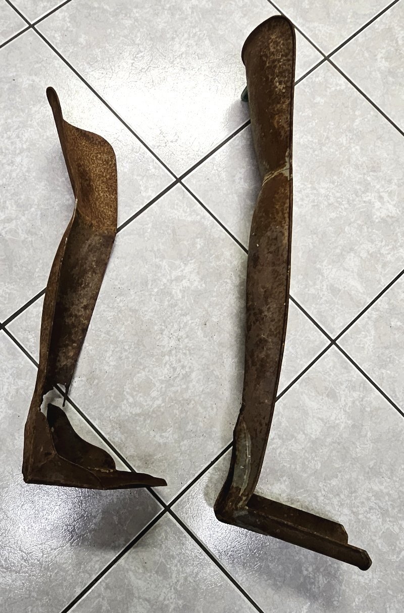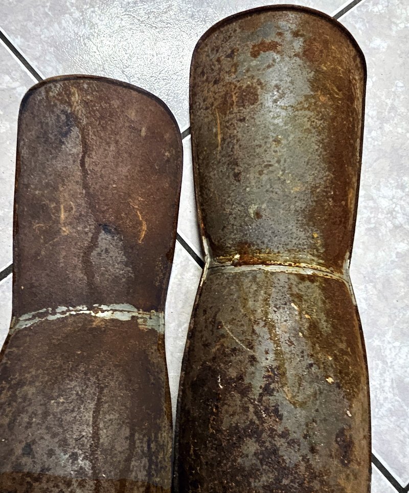 Konkret handelt es sich um 2 relativ idente Ausführungen die sich in erster Linie nur in der Länge unterscheiden; guter Gesamtzustand – allerdings jeweils links unten ist an einer Stelle das Blech jeweils weggerostet; stört aber nicht weiters und hat auch ansonsten auf die Funktion keine Beeinträchtigungen; ansonsten nur leichter Flugrost der sich auch leicht entfernen lässt; nichts verbogen und auch nichts verzogen; guter Gesamtzustand;