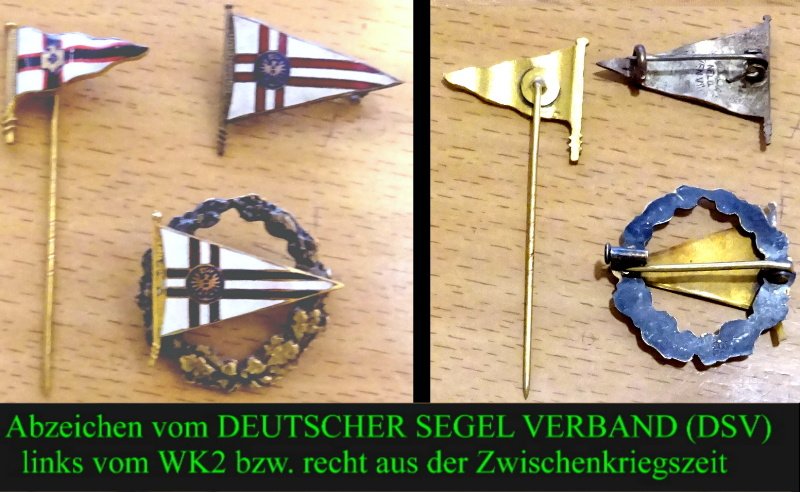 3 Abzeichen vom Deutschen Segel Verband (DSV), sehr schöner unbeschädigter Zustand; interessantes Konvolut dass von einem Mitglied stammt und somit ein zusammengehöriges Konvolut ist; alle Stücke in einer hochwertigen Ausführung und ohne Mängel; das Abzeichen links aus der Zeit des WK2 bzw. die beiden weiteren Abzeichen aus den 20er oder 30er Jahren