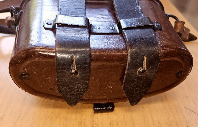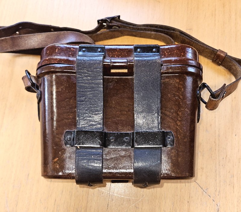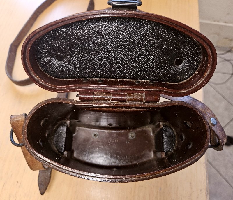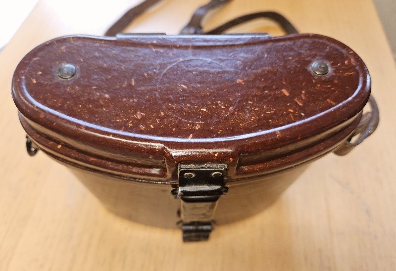 seltene Ausführung aus hellbraunen Bakelit, nur Gebrauchsspuren und leichte Verschmutzungen, keine Beschädigungen, keine Risse, keine fehlenden Teile; alle Stempelungen vorhanden und gut sichtbar, das Leder an der Rückseite im weichen Zustand; selbst der top seltene Trageriemen ist vorhanden und ebenfall in einem einwandfreien Gesamtzustand