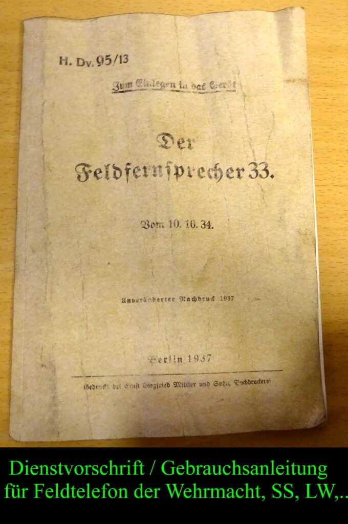 tolle Heeres Dienstvorschrift 95/13 für den Feldfernsprecher 33 – konkret also dem allseits bekannten Feldtelefon der Wehrmacht, SS, Luftwaffe,….