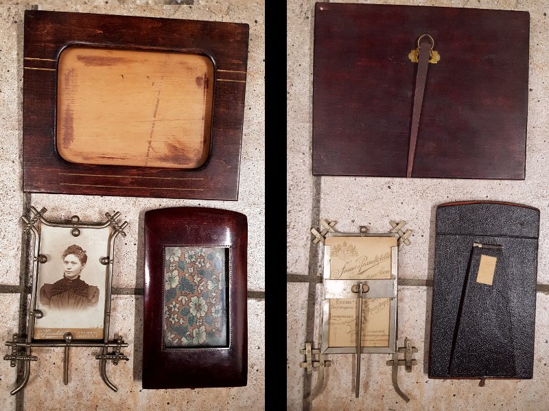 Bilderrahmen in verschiedenen Ausführungen; für Fotos in Postkarten Größe, Bilderrahmen aus der Zeit um 1890 bis 1910; guter unbeschädigter Zustand,