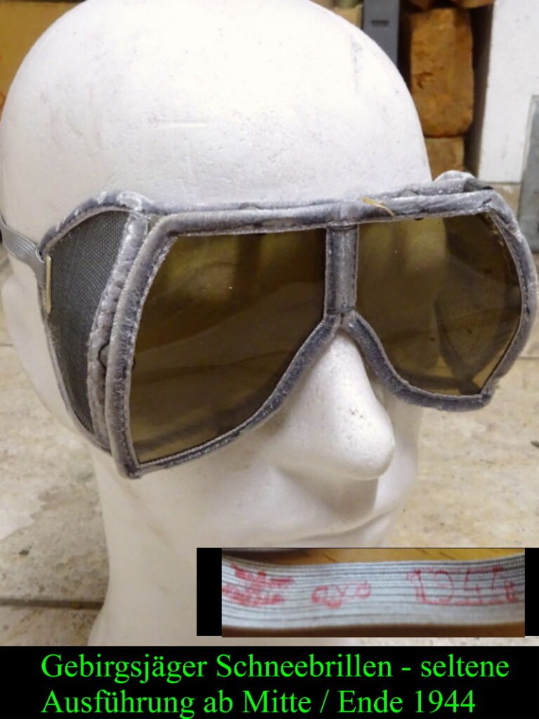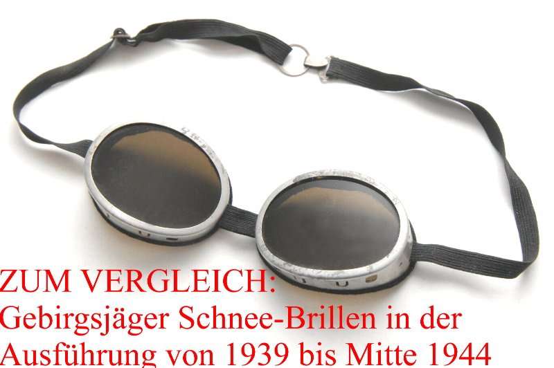 Allerdings in grauer Ausführung wie es bei den Gebirgsjägern seinerzeit üblich war; ebenfalls mit stark getönten Art Kunststoffgläsern um eine Schneeblindheit zu verhindern;