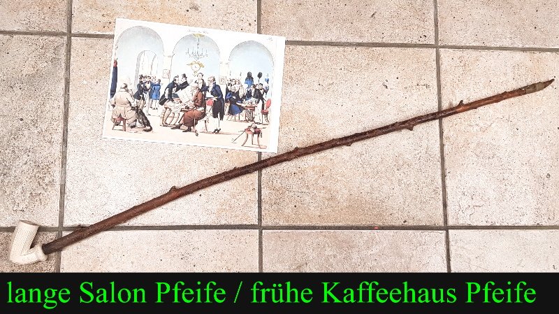 große Salonpfeife für die edlen Herren – Gesamtlänge rund 60 cm und absolut schön im Gesamtzustand; also nur leichte Gebrauchsspuren und Verschmutzungen; Holz ist selbstverständlich frei von Holzwürmern; keine Beschädigungen vorhanden