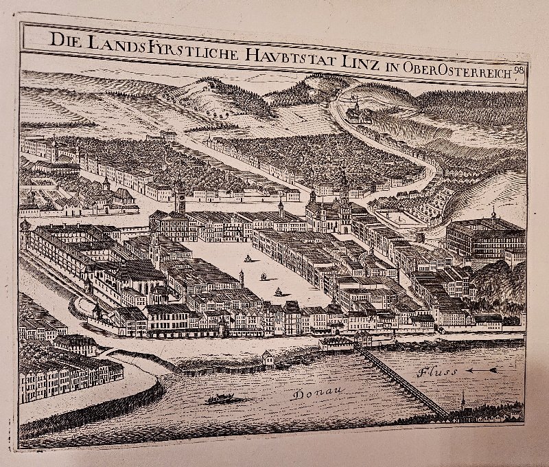 im oberösterreichischen Landesarchiv wurden in den frühen 1920er Jahren im Keller originale Kupferplatten aus der Zeit von 1669 und davor entdeckt. Diese zeigen div. Stadtansichten genauso wie Burgen, Schlösser,…..