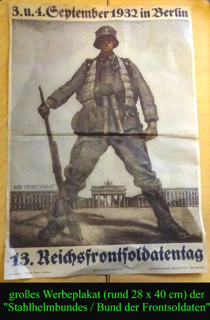 großes politisches Plakat des STAHLHELMBUNDES / BUND DER FRONTSOLDATEN “13. REICHSFRONTSOLDATENTAG”