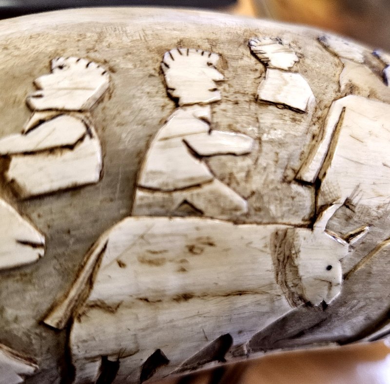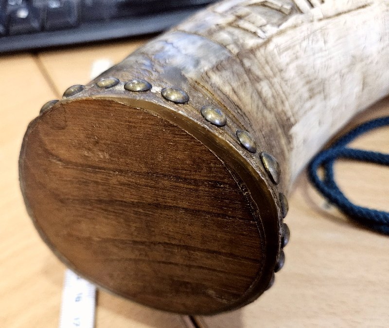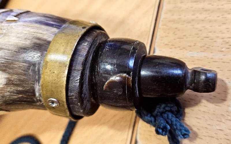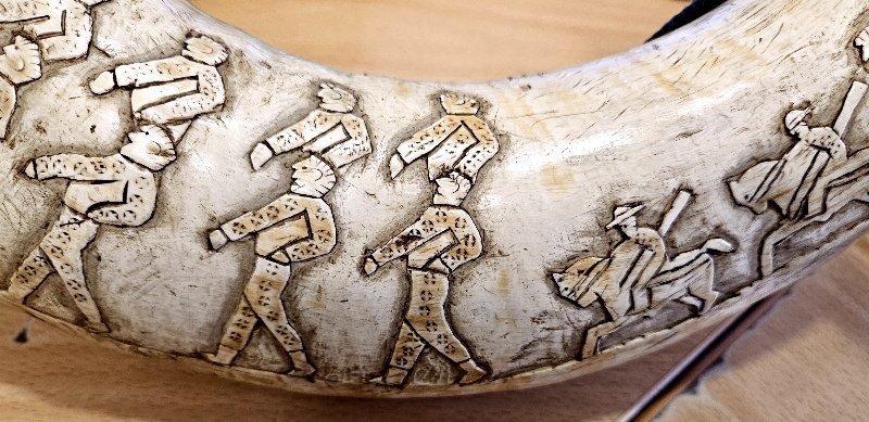 in diesre Größe und Verarbeitung ein seltenes Stück; echt tolles k.u.k. Pulverhorn – konkret aus der Teilrepublik Ungarn, dass seinerzeit ebenfalls ein Bestandteil der k.u.k. Monarchie war; stammt von einem ungarischen Rind, dass seinerzeit frei in der Steppe lebte und ist somit auch dementsprechend groß; originales Stück aus der Zeit um 1840 – 1860; und und über mit Personen- und Tiermotiven beschnitzt; wurde komplett gereinigt und auch teils restauriert – allerdings waren keine Beschädigungen vorhanden und auch jetzt ist alles top und unbeschädigt;