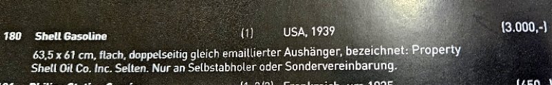 extrem seltene Shell Email Tafel von 1939 und noch dazu in einem seltenen top Zustand; die Email Tafel ist beiderseits emailliert; diese seltene Shell Tafel war schon mal im größten Email Tafel Auktionshaus Europas, konkret dem bekannten Auktionshaus Micky Waue, und wurde dort von Sachverständigern geprüft und beschrieben – diese Beschreibung und somit dieses Zertifikat finden sie hier ebenfalls bei den Fotos. Als Startpreis für diese Auktion wurden seinerzeit Euro 3000,– festgelegt – der Wert ist hier somit nun um einiges höher!