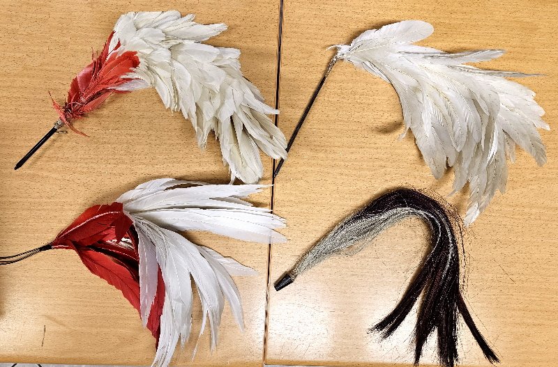 Alle Stücke sind in einem einwandfreien schönen Erhaltungsszustand; nicht wirklich verschmutzt oder verstaubt; alle unbeschädigt und auch keine losen Federn; und alle haben auch noch den Haltestock der dann in den Leibgardehut eingesteckt wurde.