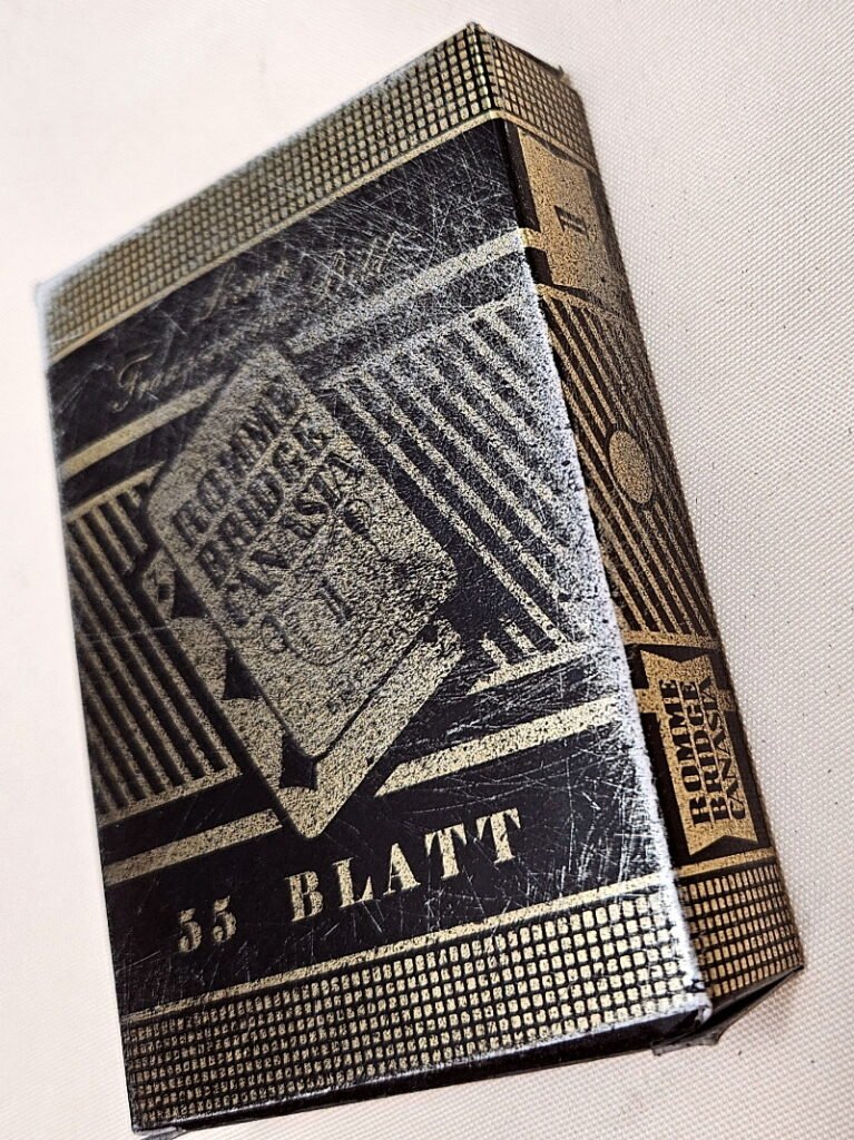 Ebenso die Spielkarten in der Packung selbst; die Mannschaftausführung hatte nur einfache Karton Karten – bei der Offiziersausführung sind diese zusätzlich beschichtet worden um sie besser vor Schmutzu und Wasser zu schützen;