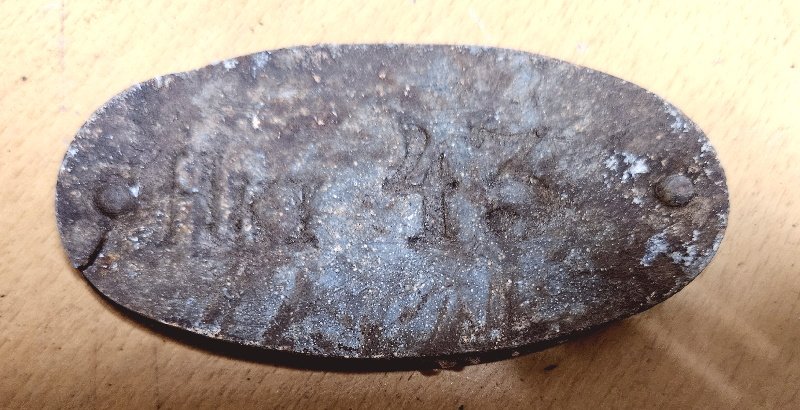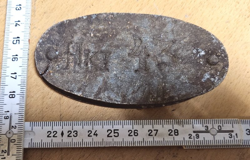 ebenfalls ein Stück, dass nicht so oft aufzufinden ist; konkret handelt es sich hier um ein doppelseitiges sogenanntes Kennzeichnungsschild / Herstellerschild eine Abdeckplane für Geschütze und Fahrzeuge; dieses ist sozusagen 2-teilig und wurde an der Ober- und Unterseite dieser Fahrzeug- und Geschützplanen angebracht. Sozusagen – oben und unten jeweils das Schild und in der Mitte befindet sich die Plane;