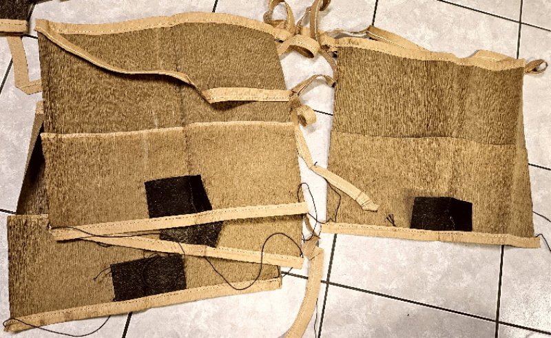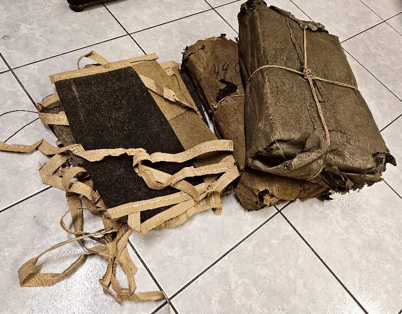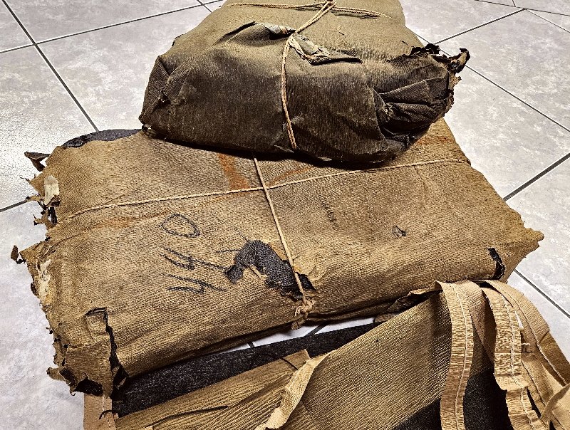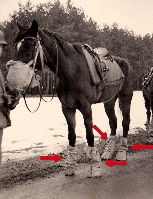 extremst seltene Pferde-Gamaschen die als Kälteschutz nur an der Nordfront sowie tiefen Ostfront zum Einsatz kamen; gefertigt aus sogenannten Strapaz-Papier (sehr reißfest) und oftmals an der Front aus Mangel verheizt bzw. die wenigen Stücke nach dem Krieg vergammelt. Heutzutage extremst selten zu finden;