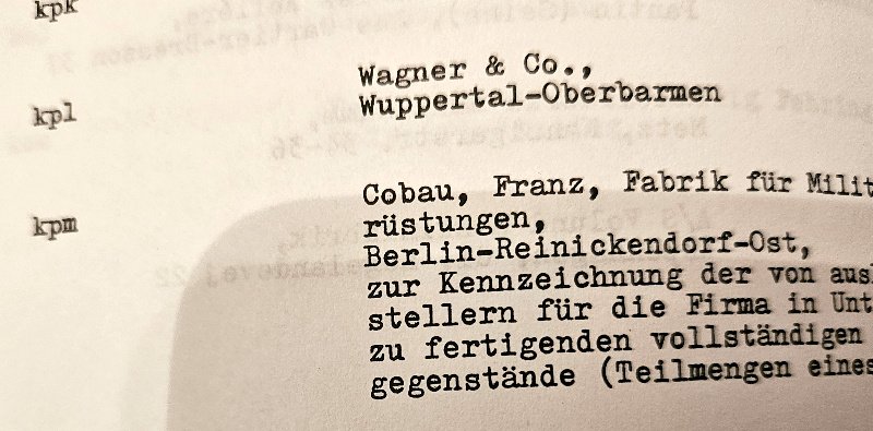 Wie schon erwähnt ist an der Umverpackung auch noch ein Herstellerschild erhalten geblieben; darauf ersichtlich die WaA Stempelung sowie das Herstellerjahr 40 (für 1940) sowie auch der Herstellercode kpl der seinerzeit für das Werk der Firma WAGNER & CO, WUPPERTAL-OBERBARMEN stand.