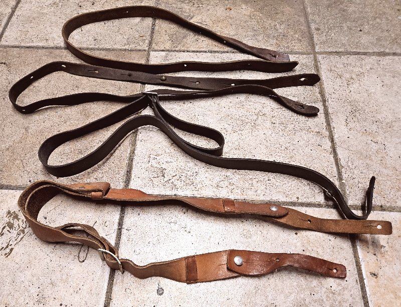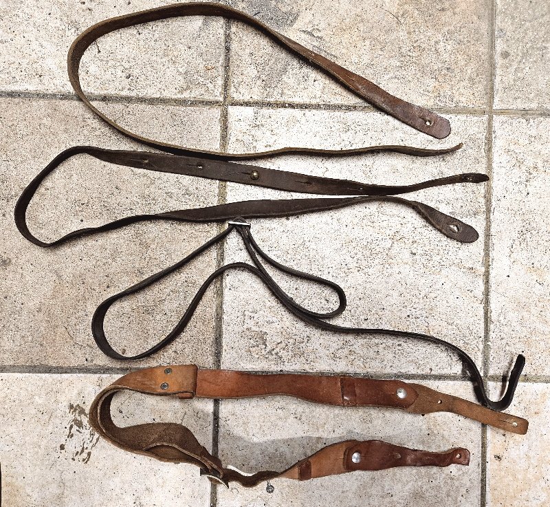 an der 3 Position am Foto ist ein M95 Riemen aus der Mitte des WK1; dieser noch mit etwas dickerem Leder und zum Verstellen mit einer Schiebeschnalle bzw.