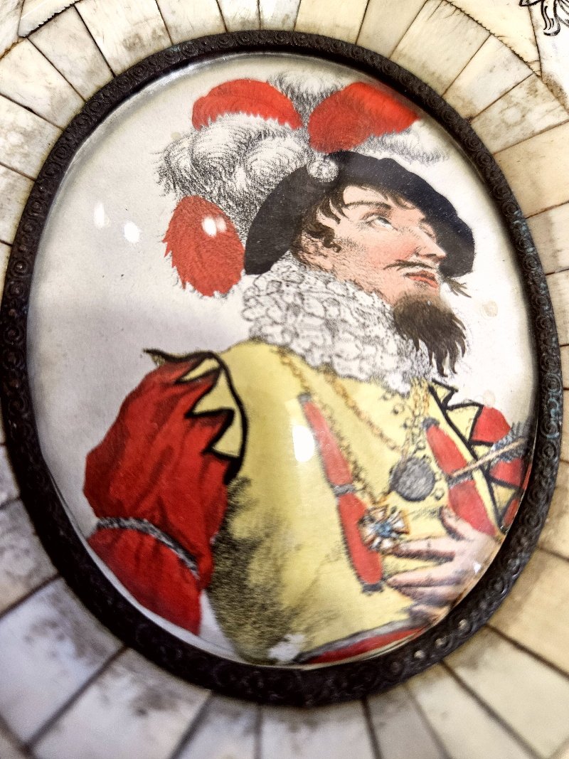 Hier nun ein Miniaturgemälde aus der Zeit um 1800; rückseitig auch bezeichnet mit FRANZÖSISCHER REVOLUTION UM 1800; Bildnis ist unter Glas und somit bestens vor äußeren Einflüssen geschützt; Der Rahmen aus Messing gefertigt und sehr schön und sauber verarbeitet; zusätzlich wurde dieses Gemälde noch mit einem weieren Rahmen gefasst; und dieser ist auch Elfenbein gefertigt und ebenfalls alles in einem sehr schönen Gesamtzustand; alles ohne Beschädigungen; echt tolles Stück Zeitgeschichte;