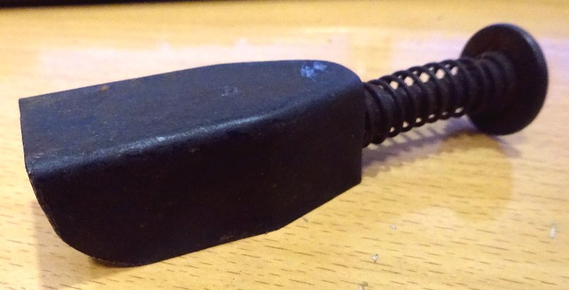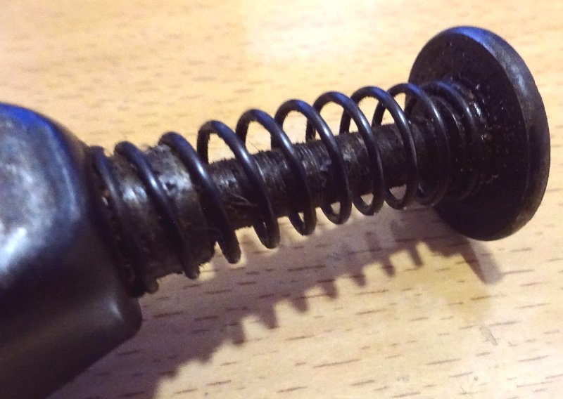 schöner Gesamtzustand; nichts verbogen und nichts verzogen; die originale Brünnierung ist noch weitgehend einwandffrei erhalten geblieben; nur Gebrauchsspuren und Verschmutzungen; der Drücker ist auch noch leichtgängig (sitzt also nicht fest) und auch die Feder hat noch eine gute Spannkraft;