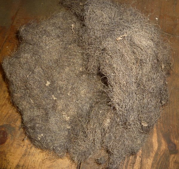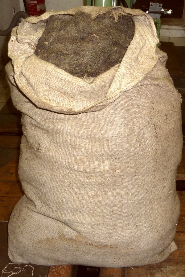 unberührter Bestand eines Sattlers an Pferdehaaren – unbeührter Bestand aus der Zeit um 1900 – nach Ableben des Sattlers blieb seine Werkzstatt über Jahrzehnte unberührt brach liegen – anschließend wurde der komplette Bestand in ein Heimatmuseum übergeben und dort eingelagert. Allerdings aufgrund ständigen Platzmangel nie wieder in Form einer Sattlerwerkstatt um 1900 aufgebaut. Vor einigen Jahren erwarb ich Teile dieser ehemaligen Sattlerwerkstatt. Unter anderem auch einen kompletten Sack dieses originalen Füllmaterials, in Form dieser Pferdehaare – kompletter Sack voll, das seinerzeit zum Befüllen der Polsterungen für das Stahlhelm Innenleder, Polsterungen von Rückentragen, Polsterrungen von div. Ausrüstungsgegenständen,….verwendet wurde.
