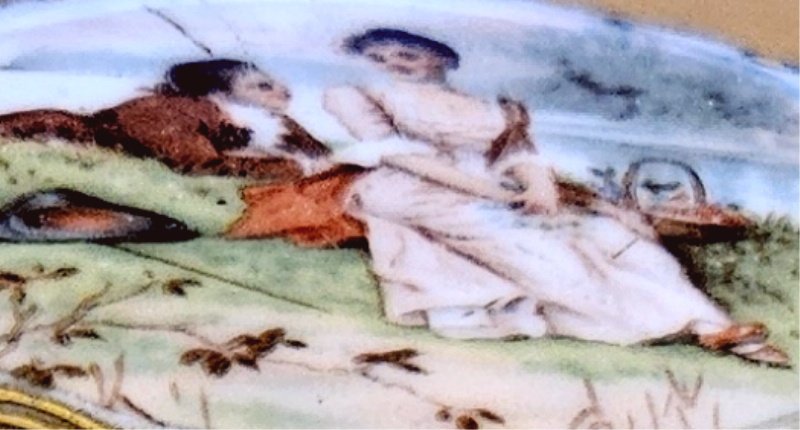 hochwertig gerfertigte Porzellandose mit Miniaturmalerei am Deckel; sehr feine saubere Arbeit – speziell das Miniatur Bildnis ausgesprochen fein und hochwertig per Hand gemalt; diese Miniatur Malerei ist einwandfrei einwandfrei erhalten geblieben; die restliche Ziermalerei an der Porzellan Deckeldose ebenfalls sehr schön erhalten – nur durch das Abwischen um die Dose zu entstauben ist diese restliche Ziermalerei nicht mehr im top Zustand; aber keine wirklichen Mankos;