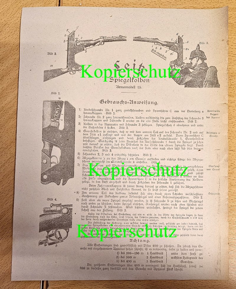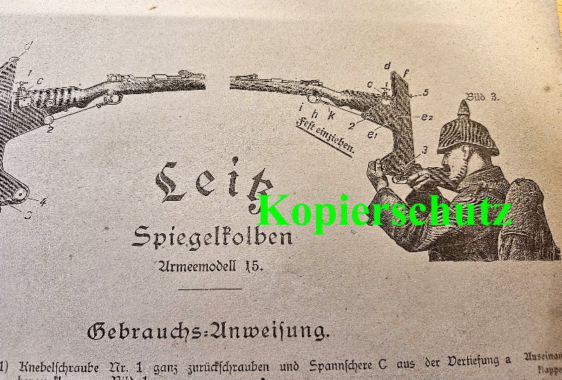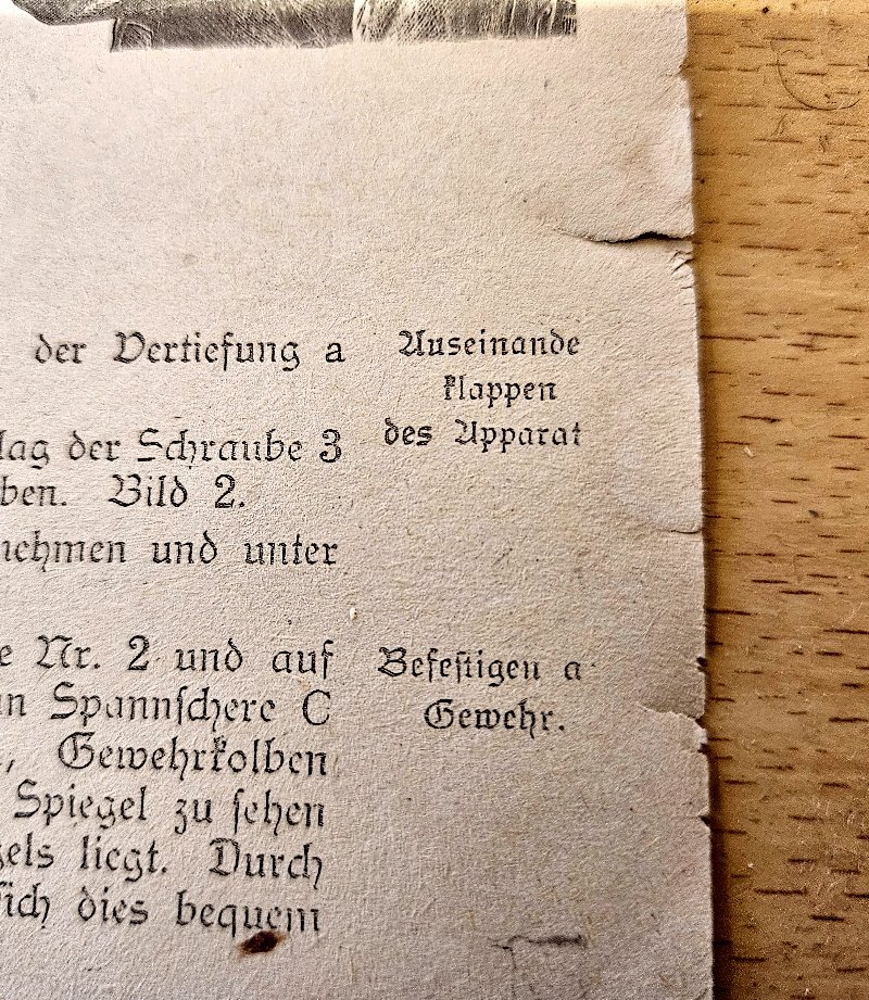 Und von diesem Spiegelkolben können sie hier nun die noch seltenere Grauchsanleitung ergattern; noch dazu ist diese in einem einwandfreien Gesamtzustand erhalten geblieben; absolute top Rarität im Außmaß von rund 20 x 30 cm (unter den Fotos auch en Belegfoto wie so ein Spiegelkolben / Deckungszielgerät am Rand eines Schützengrabens liegen geblieben ist)