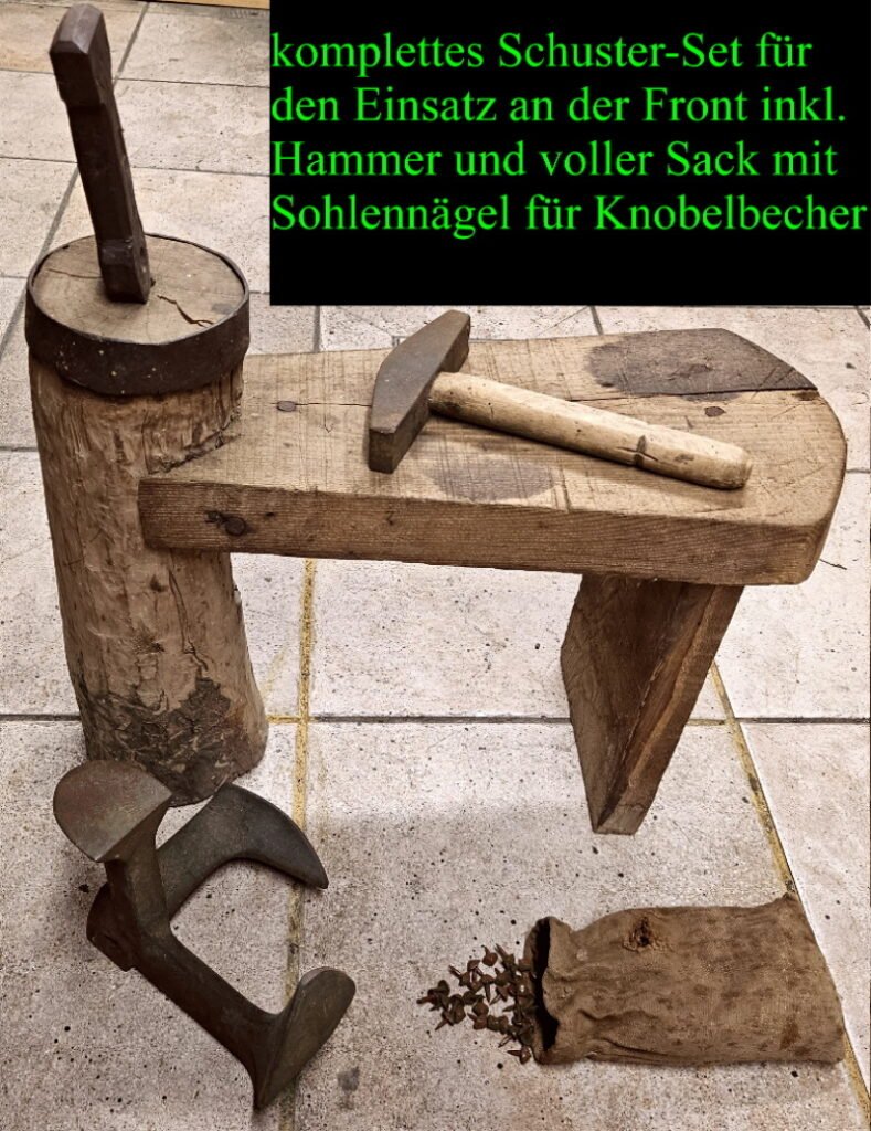auch nicht mehr alle Tage zu finden denn hier handelt es sich um einen sogenannten Schusterbock eines Front-Schusters; dieser war ständig bei der Truppe um hier Schuhwerk direkt an der Front richten zu können;
