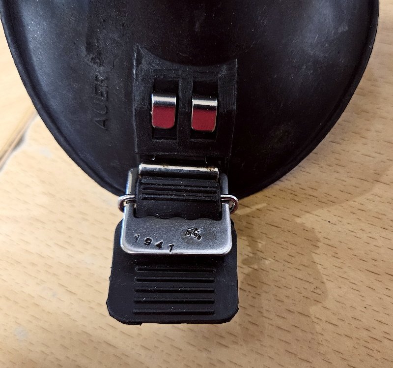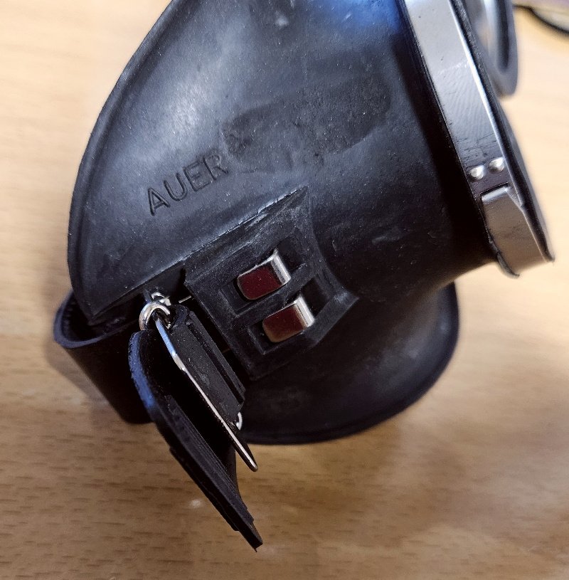 Stemplungen vom Hersteller – konkret von der Firma Auer, die ebenfalls für die Wehrmacht Gasmasken fertigte. Ebenso eine Stempelung von 1941 – ebenso WaA Abnahmestempelung der Kriegsmarine