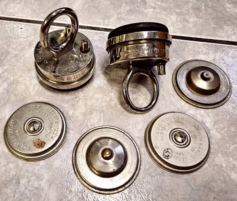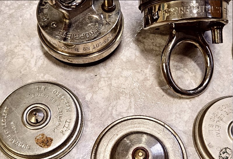 echt ein tolles Konvolut aus der Zeit um 1900 bis 1920; speziell solche Ersatzteile aus dieser Zeit sind extrem schwer zu bekommen. Teils auch Datierungen vorhanden; konkret handelt es sich um die Einsätze für den Hörer (nicht für die Sprechmuschel) bzw. um 2 Hörer-Einheiten für ein Wandtelefon;