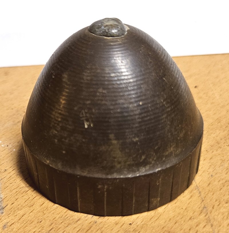 Transport-Sicherungskappe für eine russische WK2 Granate; diese war über dem Zünder aufgeschraubt und verhinderte eine unabsichtliche Fehlzündung; wurde vor dem Granat Verschuss abgeschraubt und so war die Granate dann erst wirklich scharf; Die Kappen wurden allerdings nach dem Abschrauben in eine Kiste geworfen und so an den Hersteller zurück geliefert. Nach dem Krieg aufgrund des Material eingeschmolzen und somit heutzutage nur mehr sehr selten zu bekommen;