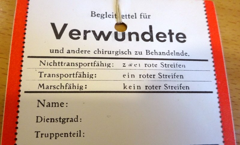 kam bei allen Truppenteilen zum Einsatz und zeigte in Kürze den Grad der Verwundung eines Soldaten; Zusand ist einwandfrei; fast keine Verschmutzungen sowie fast keine Gebrauchsspuren;