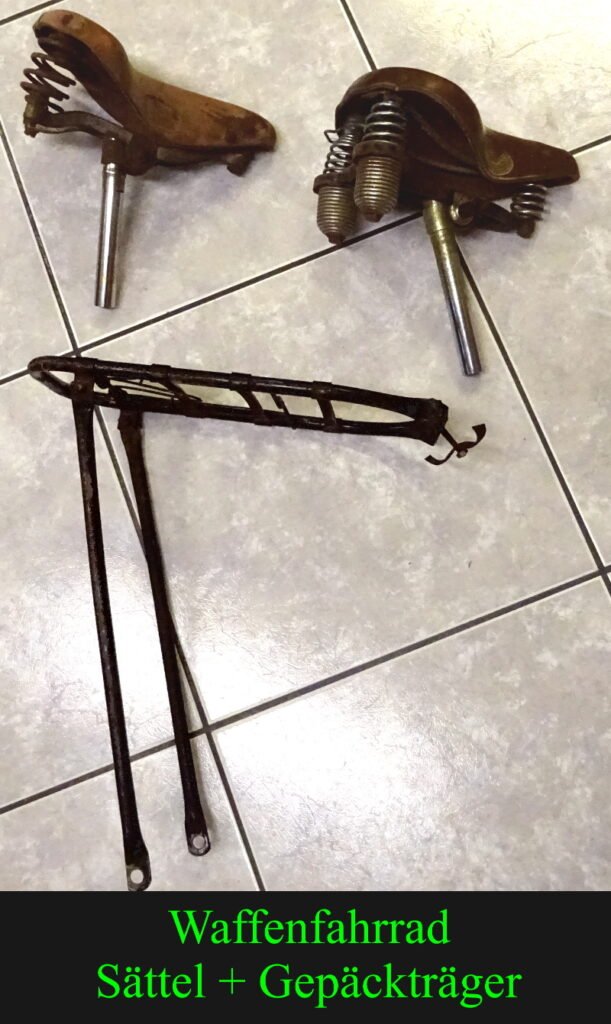 tolles Konvolut von Ersatzteilen fürs Waffenfahrrad; alle Stücke haben nur Gebrauchsspuren und Verschmutzungen; fallweise leichter Rostansatz der sich jedoch leicht entfernen lässt; ansonsten größtenteils im sehr schönen unberührten Erhaltungszustand; volle Funktion und somit auch sofort einsatzbereit.